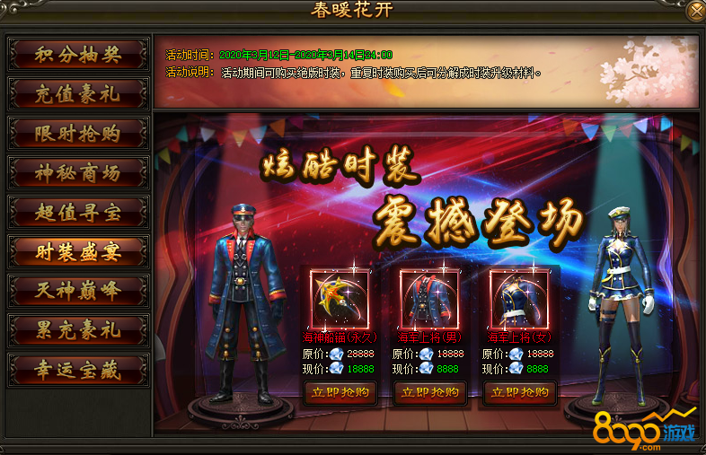 2.活动期间内,玩家可购买绝版活动时装,每个玩家限购一次