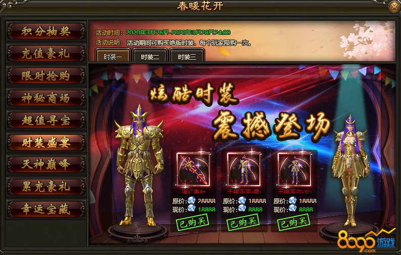 2.活动期间内,玩家可购买绝版活动时装,每个玩家限购一次