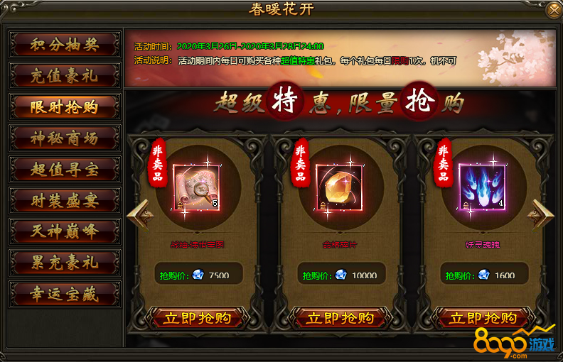 2.活动期间内,神秘商场每日刷新各种珍稀道具,打折出售限量抢购。