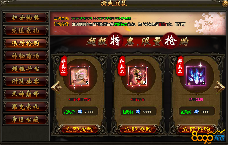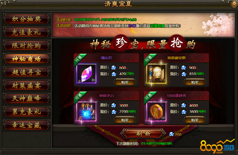 2.活动期间内,神秘商场每日刷新各种珍稀道具,打折出售限量抢购。