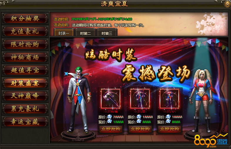 2.活动期间内,玩家可购买绝版活动时装,每个玩家限购一次