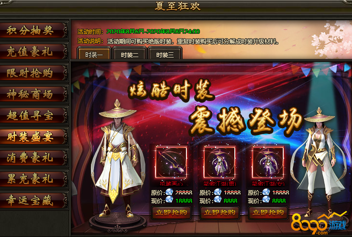 2.活动期间内,玩家可购买绝版活动时装,每个玩家限购一次