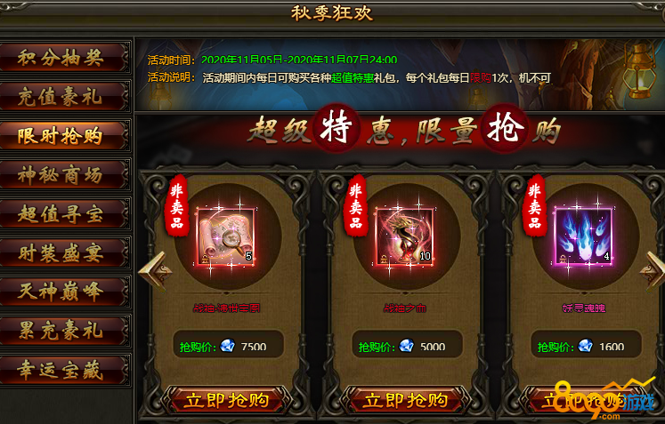 活动时间:2020年11月5日00:00—2020年11月7日24:00