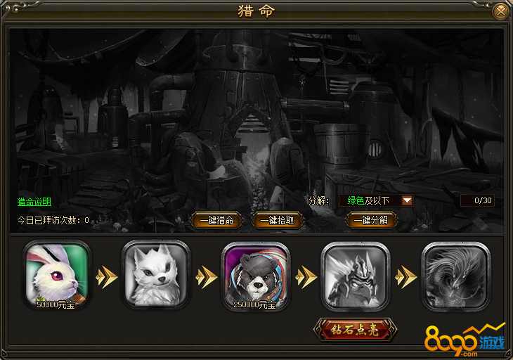 1)开服第60天后,等级达到500级,可以在锻造界面内打开
