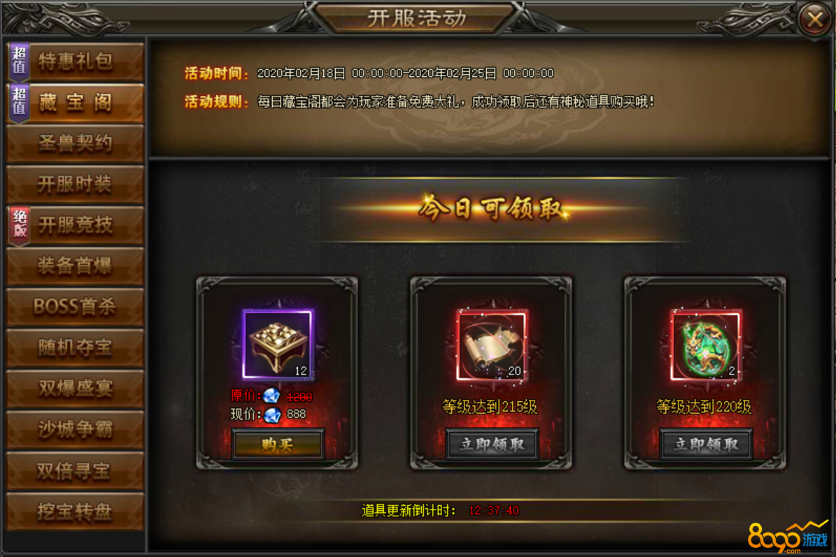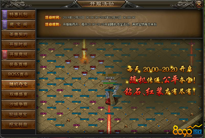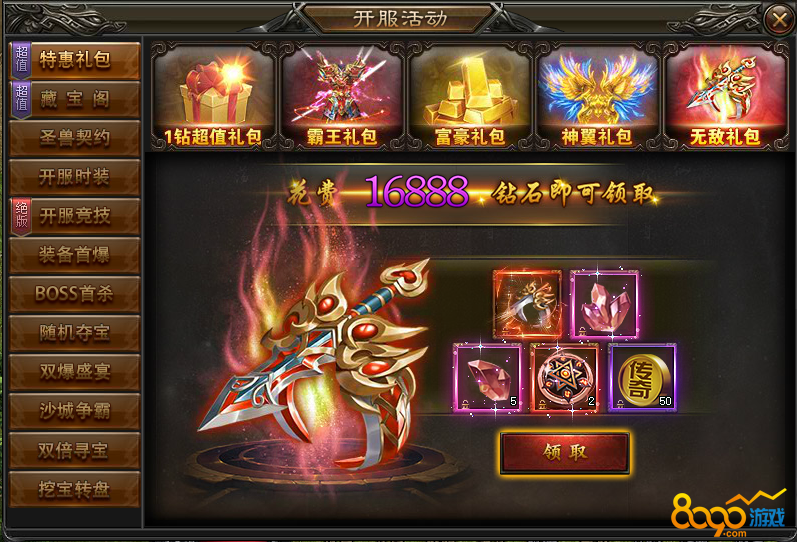 活动介绍:开服后每天会准备海量超值物品供玩家购买