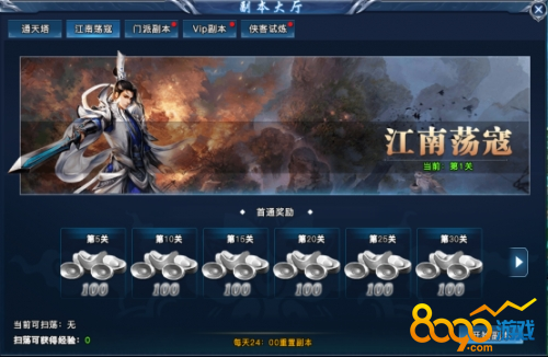 通过每关江南荡寇可以获得巨额经验,通关一档可获得大量元宝奖励。