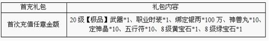 | 10级成长礼包 | 神兽丸*5,冷却符*5,小还丹*30,金元散*30,绑银100000 |