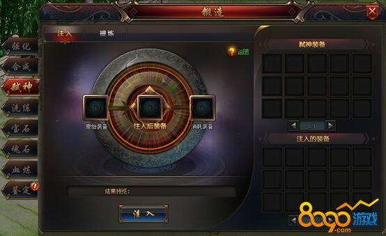 锻造系统—注入与提炼功能现在已整合至弑神面板,玩家点击 弑神面板即可对弑神装备的注入与提炼进行操作。