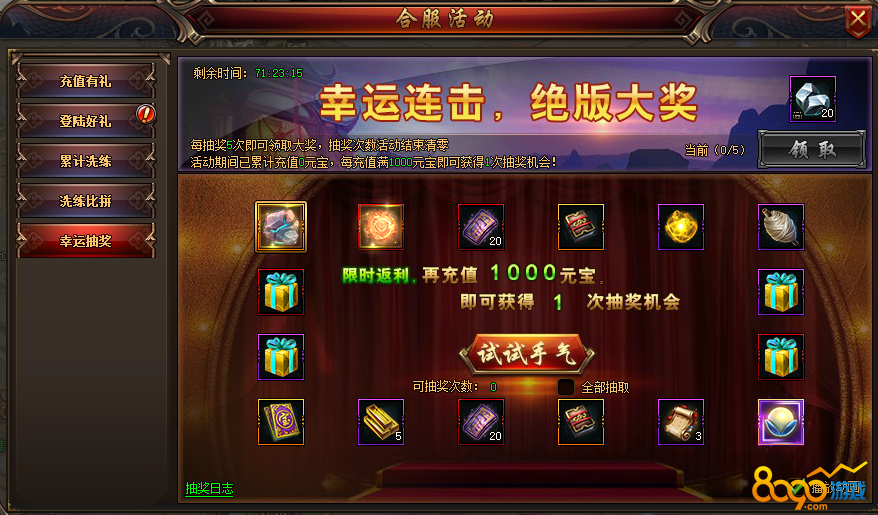 5. 幸运抽奖:充值相应金额的元宝,抽取超值奖励