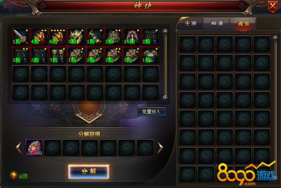 多余的魂装可以在桃源仙境神炉处分解获得魂装碎片,魂装碎片可以用来升级血炼,提升血炼等级也可以增加很多属性。