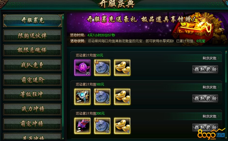 活动期间每日充值满指定数量的元宝,即可获得丰厚奖励。