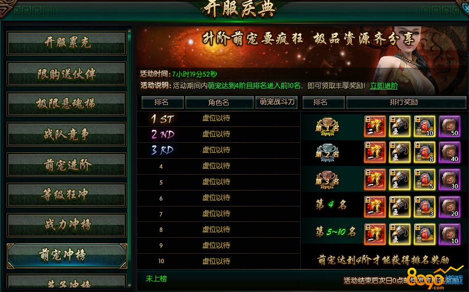 活动期间内萌宠达到4阶且排名进入前10名,即可领取丰厚奖励。
