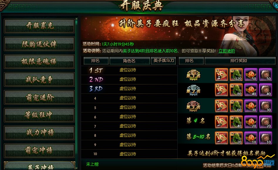活动期间内英子达到4阶且排名进入前10名。即可领取丰厚奖励。