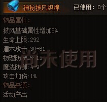 魔龙诀披风可以增加玩家的攻击防御以及生命上限,至于披风的升级也就是培养有很多方法,比如资质培养、潜能培养、披风魔符培养等,这里小编给大家介绍一种新方法,那就是使用新道具神秘披风织锦来培养,使用后能额外增加5%披风升阶给大家带来的属性,不过每个角色只有一次使用机会哦!