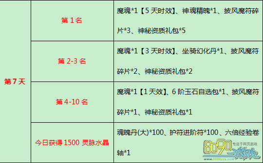 第七天:神秘资质礼包*10、披风魔符碎片*4、进阶血石*88