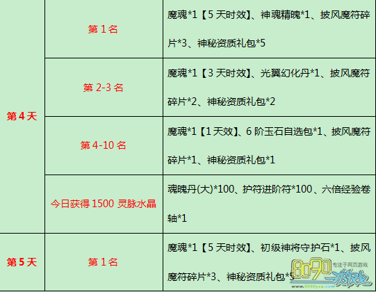 第五天:神魂精魄*1、披风魔符碎片*1、进阶血石*88