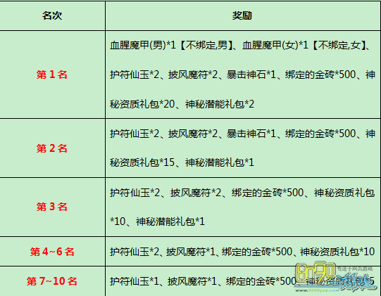 800活跃:进阶血石*100、绑定金砖*100、血腥骑士灵魂残片*2