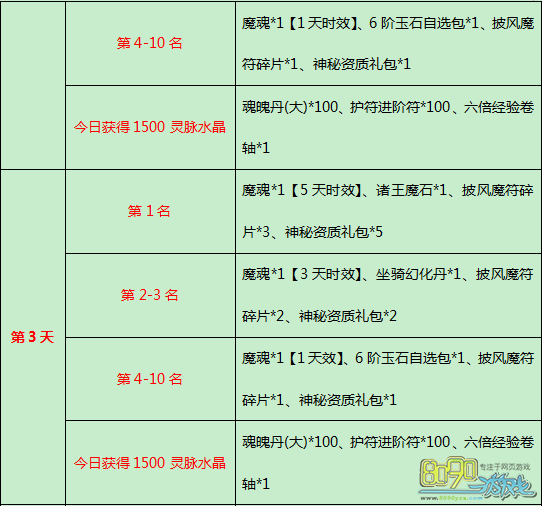 第三天:光翼幻化丹*1、披风魔符碎片*1、进阶血石*88