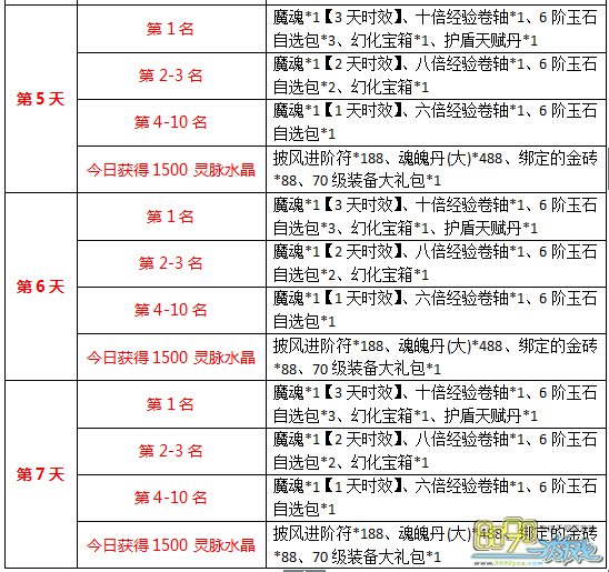 第五天:神魂精魄*1、披风魔符碎片*1、进阶血石*88