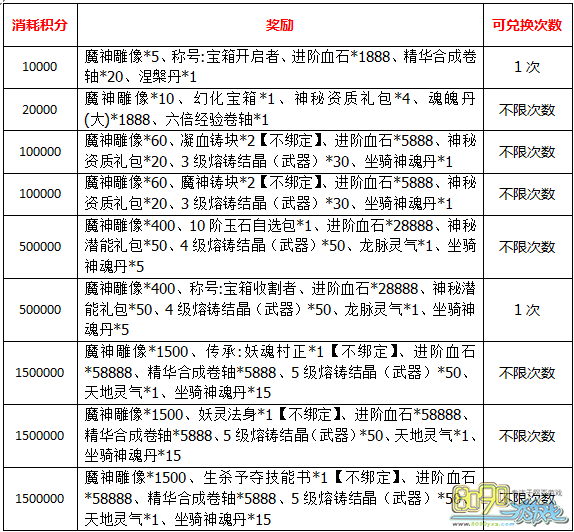 达标奖励:魔神护佑*1、战魂精华*30、3级熔铸结晶(武器)*288、进阶血石*2888、进阶大礼包*1、坐骑神魂丹*10、神秘资质礼包*20