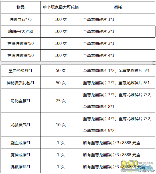 ² 同时在活动中出售所有至尊龙鼎碎片: