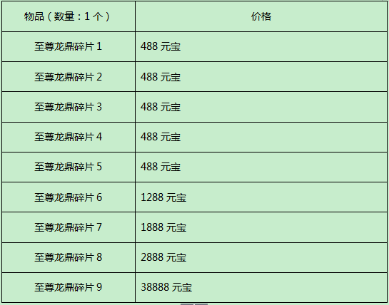 ² 同时在活动中出售所有至尊龙鼎碎片: