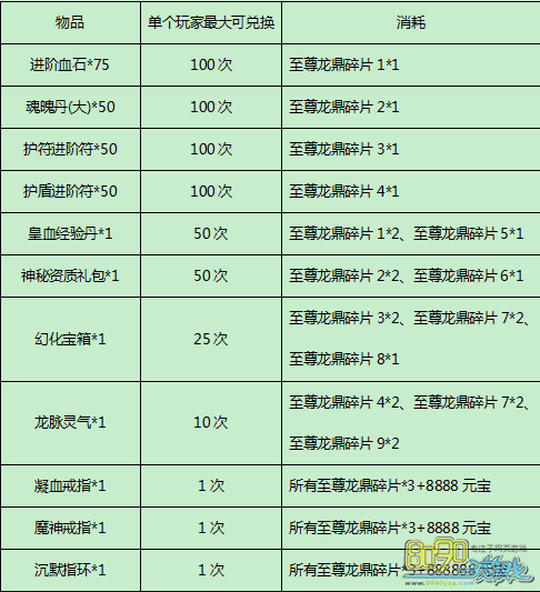 ² 同时在活动中出售所有至尊龙鼎碎片: