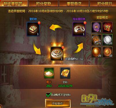 3.打开高级重阳糕,可获得高级重阳徽章;打开特级重阳糕,可获得特级重阳徽章。两种徽章作为代币,可在端午商店兑换珍稀商品。制作重阳糕的同时还可得到积分奖励,登上累积积分排行榜的勇士更有额外大奖可以拿哟!