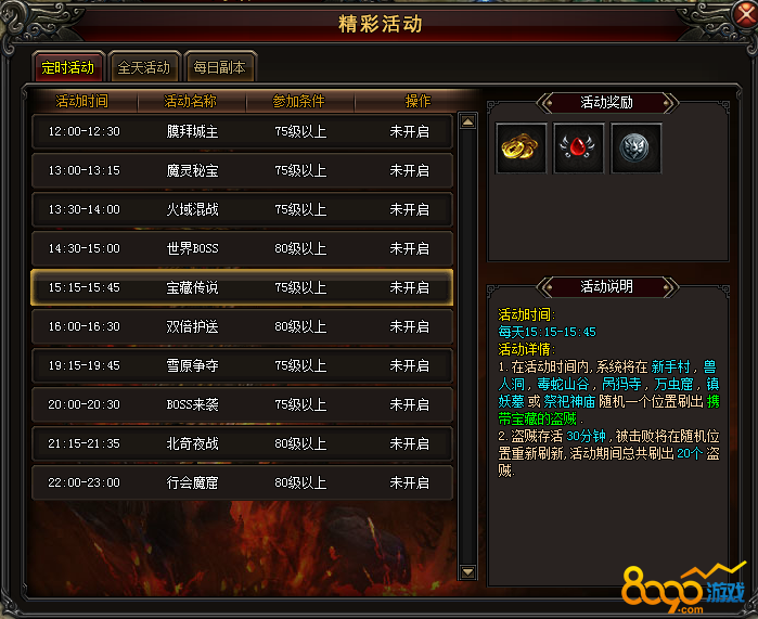 2、 任意等级的玩家均可参与宝藏传说活动;