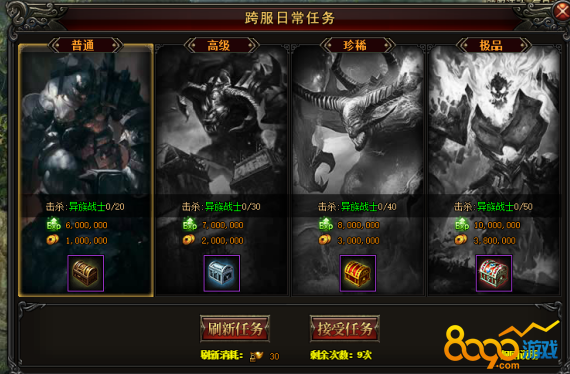 跨服里有跨服boss,不同服务器的玩家可以一起去打,击杀BOSS掉落高级装备。
