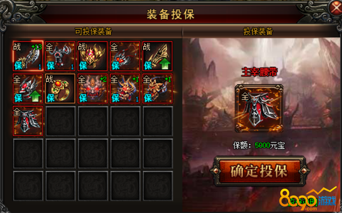 2、 投保的装备只能是角色已穿戴且非绑定的装备