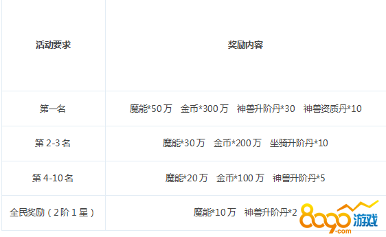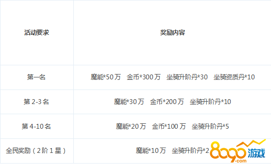 【活动内容】:活动期间,达到指定要求的玩家均可领取全民开服大奖。每日达到排行榜前10名,还可领取对应的额外奖励。