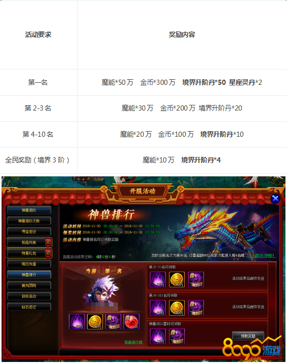 ★开服第1天:神兽排行榜★