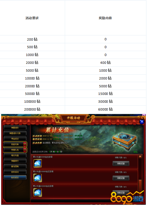 【活动内容】:活动期间累计充值钻石返还钻石