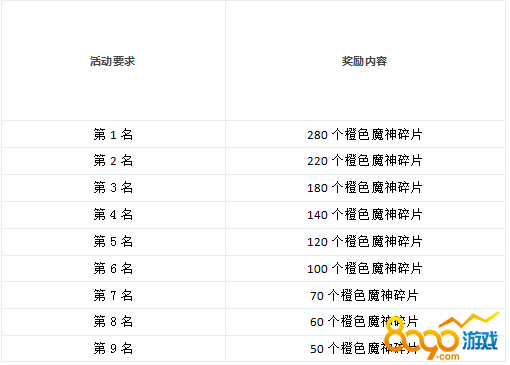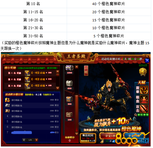 【活动内容】:活动期间寻宝积分排行奖励橙色魔神碎片