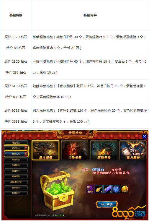 【活动内容】:开服之日起,出售特惠好礼