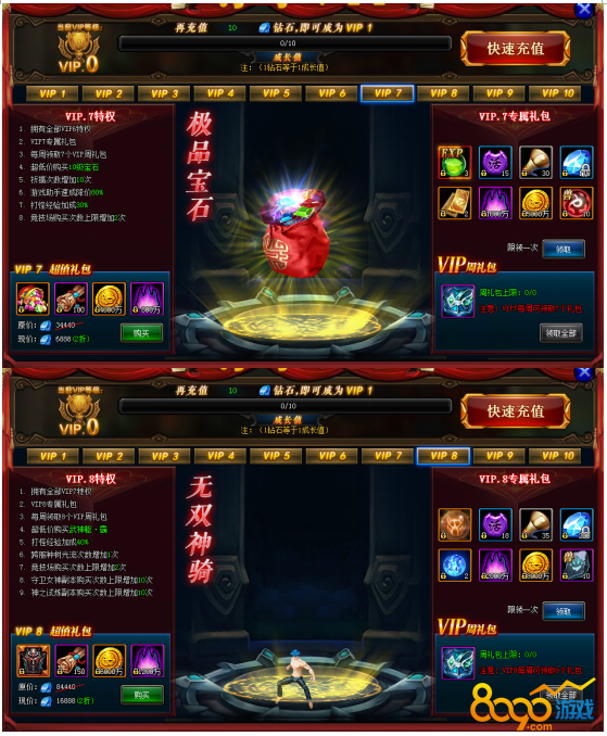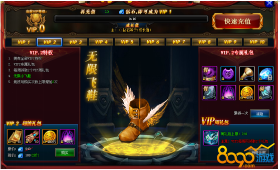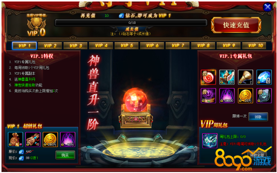 亲爱的游戏玩家,当你成为VIP后,即可领取VIP特色装备,各种特权意想不到的惊喜等着你!