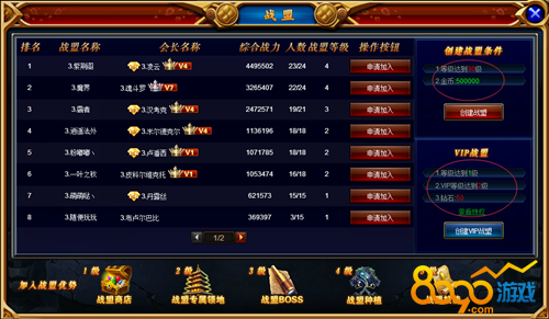 条件2:等级达到90级,VIP2级,消耗50钻石创建2级战盟。