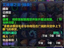 之前大家在打挑战的时候是不是对路上的小怪都比较的无语呢,长时间的被困在小怪中不能自拔。而之前获取艾维娜之羽的时候大家发现在副本中用能逃掉不少怪物,相当的实用。这件物品更是神器一样的道具,让你体验在德拉诺飞行的快感,并且目前还可以在露天副本以及战场内使用。当然在战场内使用将会面临被举报封号的危险(12月2日在线修正,战场中无法使用了)。