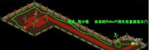 首先,沿左边墙壁跑过去,利用 两根柱子卡掉小怪(跟1号BOSS原理一样)