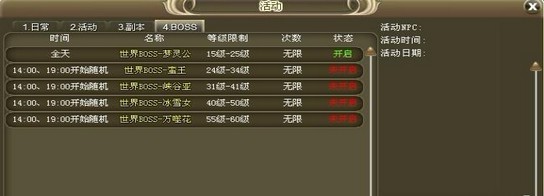 出现活动界面,点击“4BOSS”即可出现世界BOSS界面