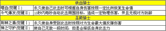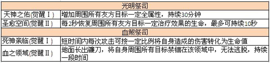 各职业觉醒技能: