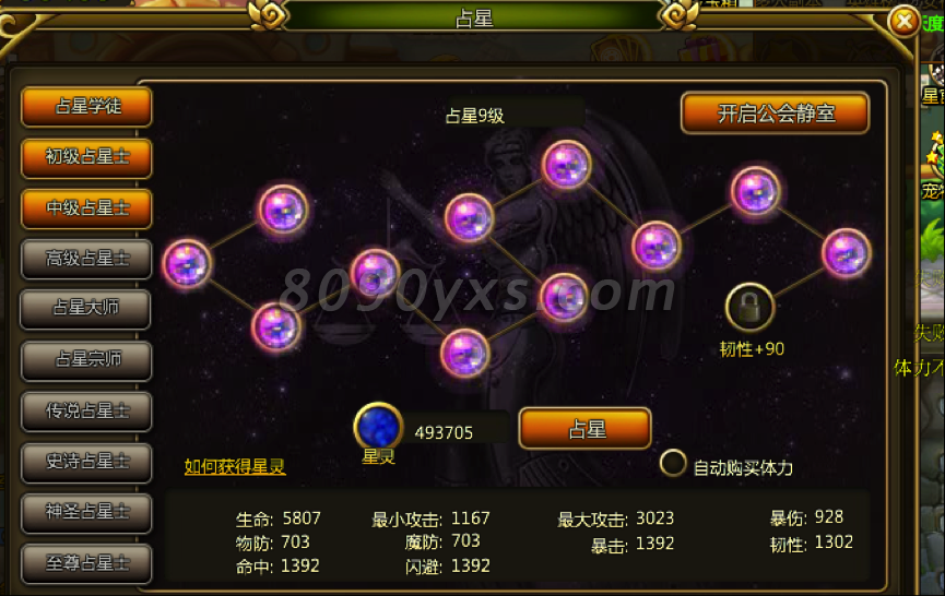在占星界面将长期积攒的体力和星灵消耗殆尽,当提示星灵不足时建议去打星宫闯关获得大量星灵,或者使用身上的礼金去商城兑换星灵丹从而获得大量星灵。