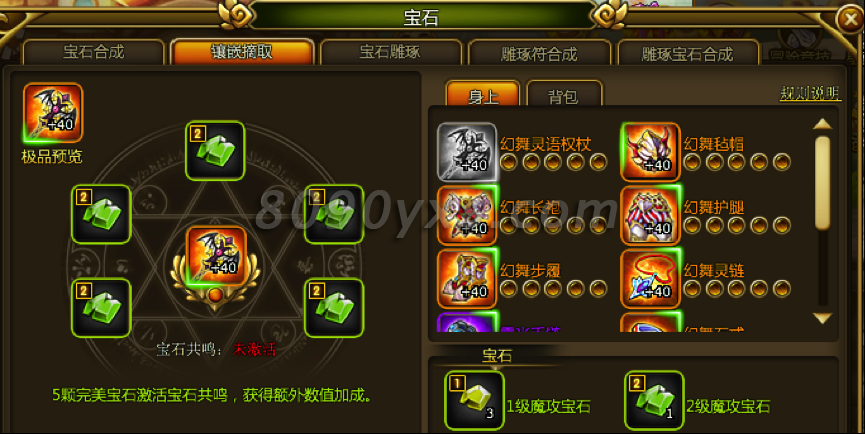 在宝石镶嵌界面将所有礼包及充值赠送的宝石全部镶嵌到装备上,不够的去商城购买三级石头进行镶嵌。