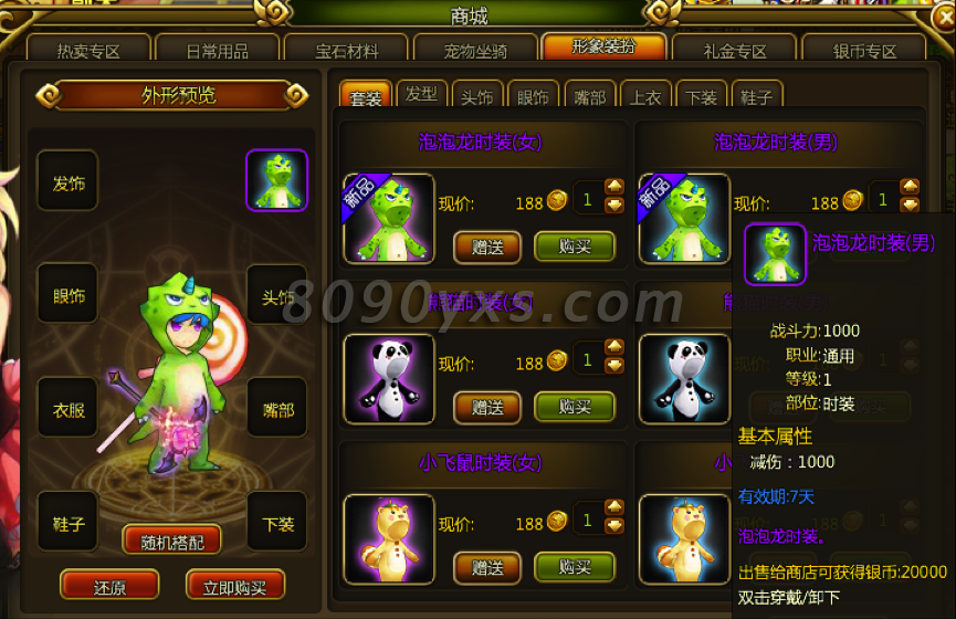 商城中的时装不仅提供可爱时尚的外观造型,还能提供可观的1000战力指数哦。