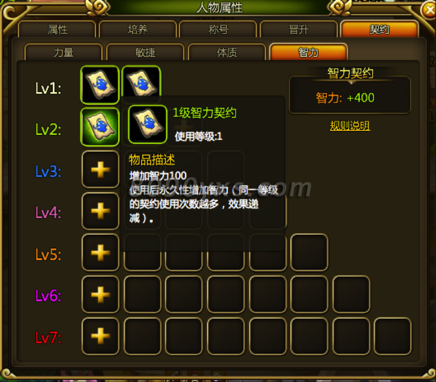 契约系统可以为角色增加大量的属性值,契约可以通过收集道具,在炼金中炼化获得,如果VIP等级满足也可以用金币直接签署,通过签署契约提升人物属性可以大幅提高战斗力。