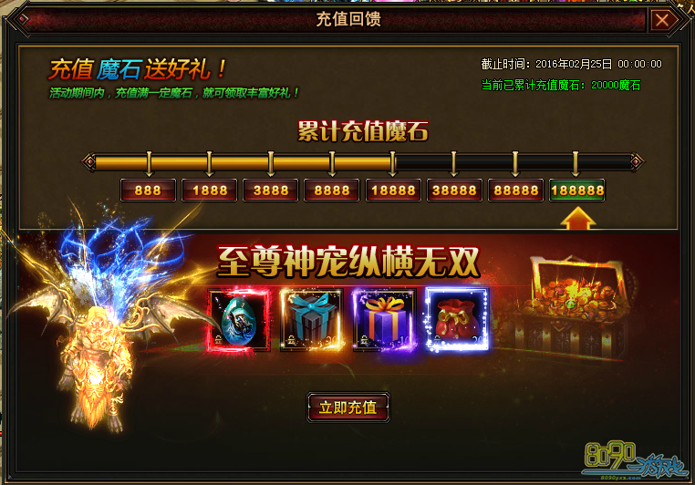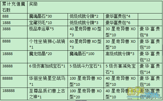 1转奖励:80星奇异兽XO型*1、魔魂晶石*25、3倍经验药水*1
