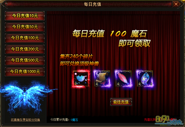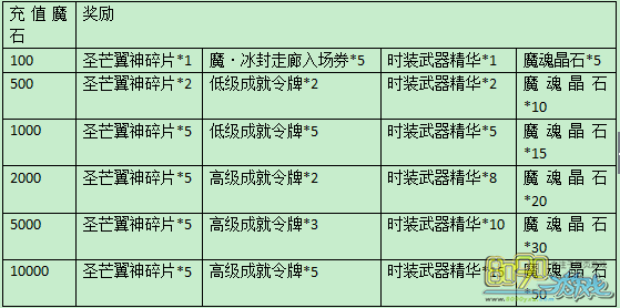 开服七天内累计充值魔石达到一定数量即可领取奖励