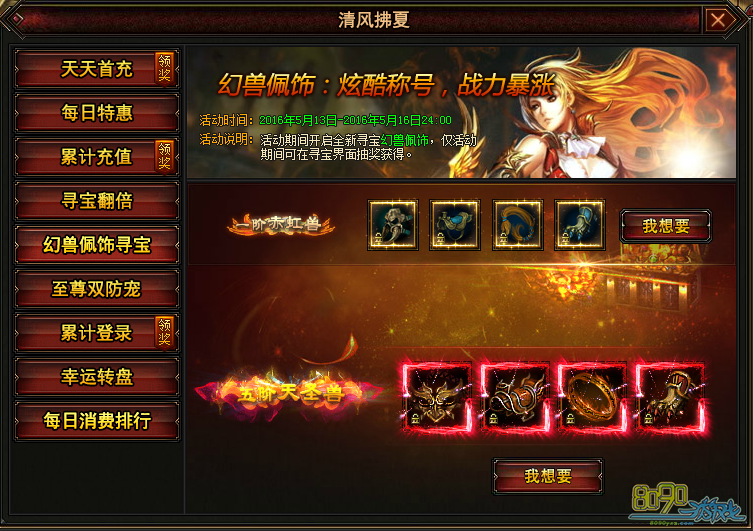 • 魔唤5月13-16日清风拂夏活动 豪华礼包天天领