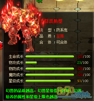 至尊红色双防属性成长: